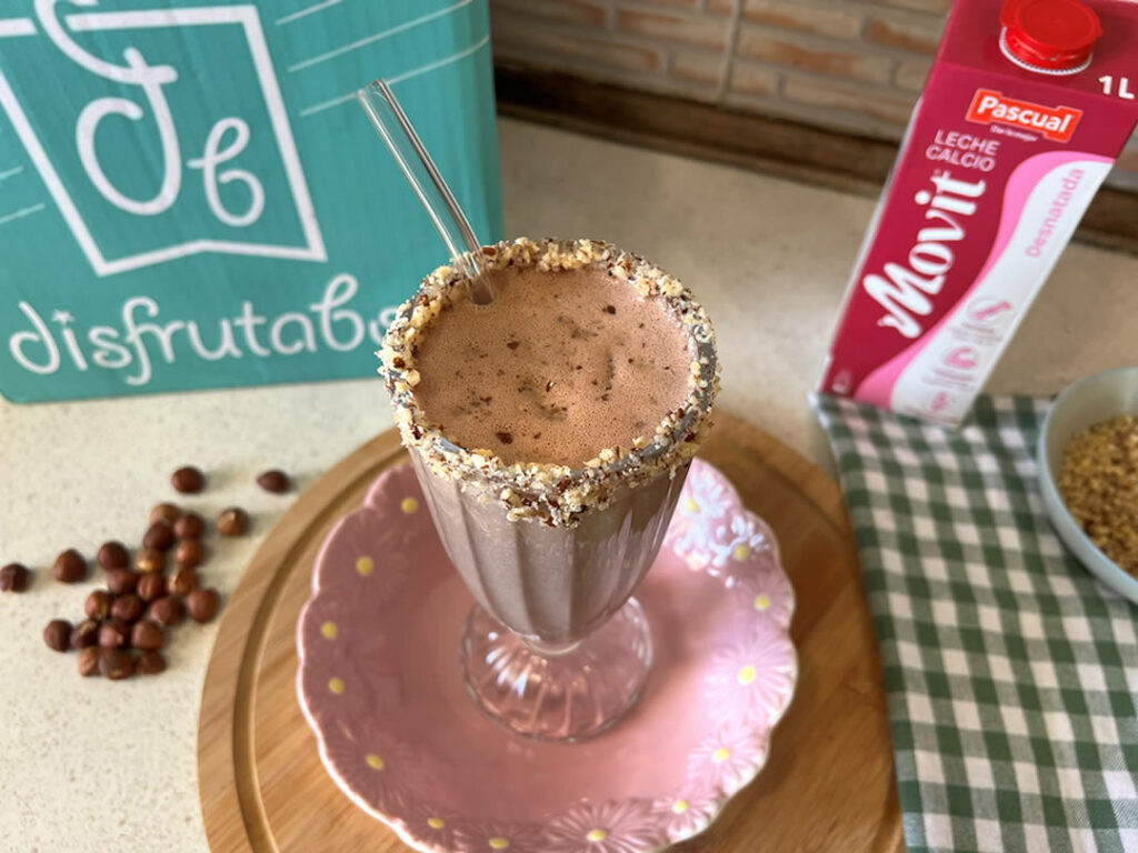 - Sirve: Vierte el batido, añade una pajita y decora con más avellanas si lo deseas.