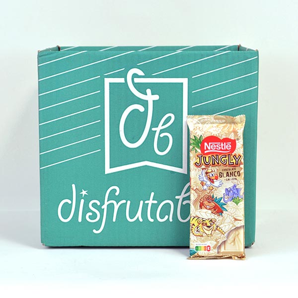 La versión en chocolate blanco de Jungly, con trocitos crujientes de galleta. Dulce, divertida y perfecta para quienes no se resisten a ese tipo de bocados que desaparecen antes de lo previsto.