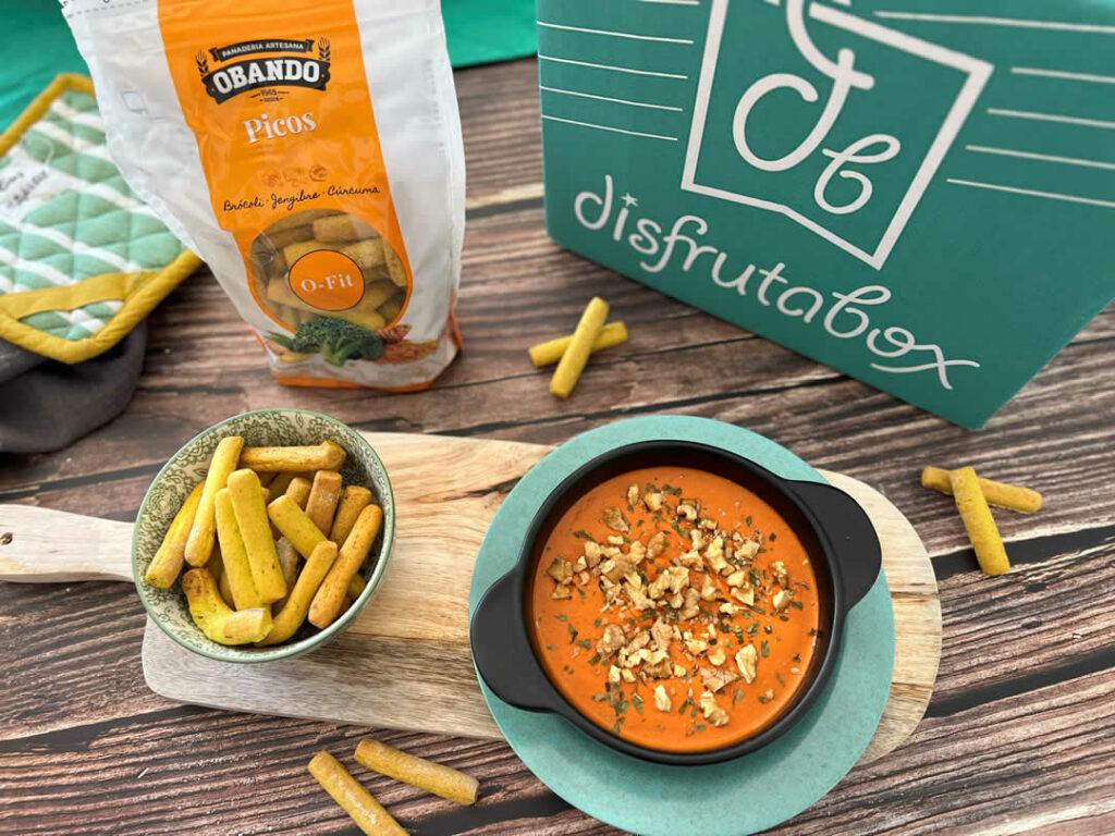 Pero si hay algo que realmente eleva esta receta es con qué la acompañas.Los Picos O-Fit de Obando aportan ese contraste crujiente que transforma la experiencia. Además, su combinación de brócoli, jengibre y cúrcuma añade un sabor diferente y original que encaja a la perfección con la cremosidad de la muhammara.